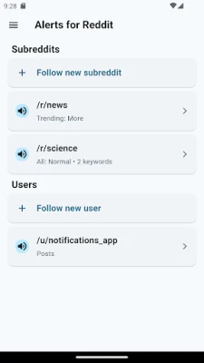 - Add/remove/mute subreddits or users at any time to start/stop seeing notifications