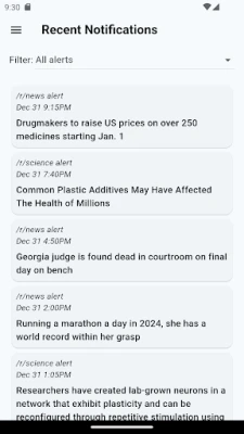 - View recent alerts for your subscribed subreddits and users right in the app.