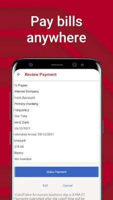 • Utilize GPS to get one-touch access and directions to ATM and banking center locations