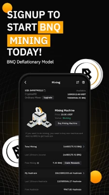 BNQ Mining, the first ever Deflationary Economic Model for mining launched by BitNasdaq, represents the next generation of cryptocurrency mining. Unlike traditional mining, which consumes substantial resources, BNQ Mining uses two consensus mechanisms for mining, the Proof of Work (POW) + Proof of Contribution (POC) model. This hybrid approach creates a faster and more sustainable framework for token generation and value appreciation.
