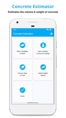 The Concrete Calculator app helps you estimate the required concrete material for slabs, footings, walls, columns, and stairs easily and quickly, without any confusion. This app is very helpful for people involved in construction, civil work, house building, renovation, or small site projects.