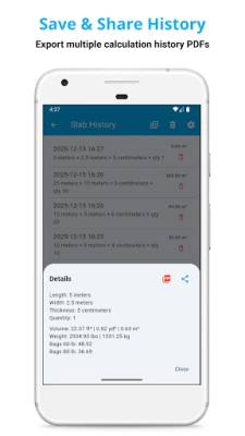 There are many apps available in the market, but this app has a unique feature of PDF reports. You can save estimated values and generate PDF reports of multiple histories in a single PDF file. You can view this history anytime and also use it to print PDF files.