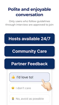 β’ 24-hour resident hosts - Only users who pass interviews and follow guidelines can participate, ensuring conversations in a verified community