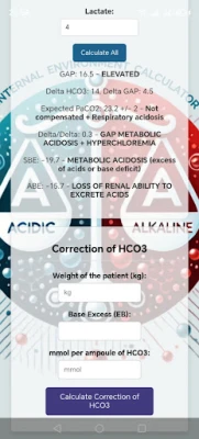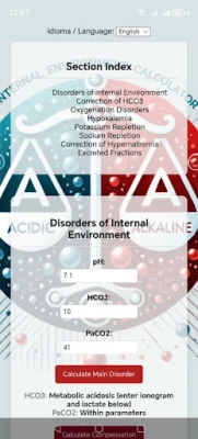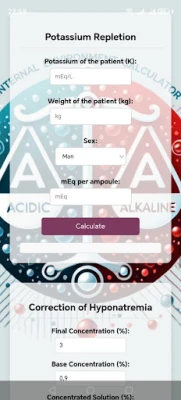 Herramienta ideal para profesionales del área que necesitan calcular de forma rápida y precisa diversas alteraciones del medio interno. Facilita el análisis de datos complejos mediante funciones automatizadas y fórmulas integradas. Diseñada para ofrecer soporte en la toma de decisiones y mejorar la eficiencia en entornos técnicos o académicos. Intuitiva, práctica y confiable