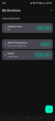 Key Features: Create and manage duration groups with multiple events Set custom start and end dates/times with 12/24-hour format support "Set to Today" feature for quick current date selection Automatic duration calculations Organized display with upcoming events section Edit and delete functionality Local data storage - no internet required Perfect for tracking