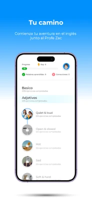 Avance por Niveles: Progresa nivel a nivel validando tu conocimiento en todo momento, enfocándote en diferentes tipos de aprendizaje que te llevarán al inglés conversacional.