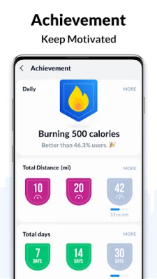 Set daily steps goal. Continuously achieve your goal will keep you motivated. You can also set targets for your fitness activity (distance, calories, duration, etc.).