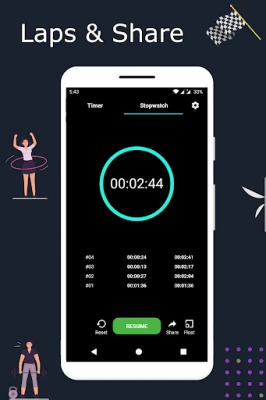 The app is accurate and responsive, useful for students taking practical, sports, cooking, running, study, gym workout, home workout, meditation, gaming and many more where you want to keep track of the time. The Countdown Timer has a circular progress shown for you to quickly get the remaining time.