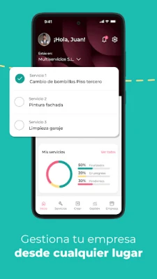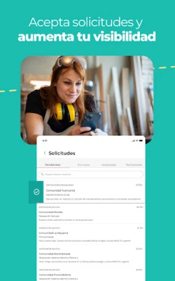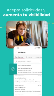 - Gestión de trabajos simplificada: Recibe solicitudes, envía presupuestos, asigna tareas, adjunta documentos y mantén el control de todas tus tareas y servicios