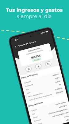 - Facturación sin estrés: Crea y envía facturas en segundos, programa facturas recurrentes y cumple con la normativa de facturación electrónica y la ley antifraude.